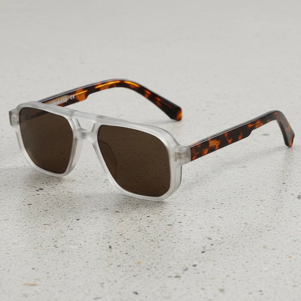 Our Vector Aviators are not merely eyewear; they are a statement of refined distinction. The modern frosted frame paired with classic tortoiseshell arms asserts an unrivaled aesthetic, elevating your presence instantly. This is curated craft, designed for impact.